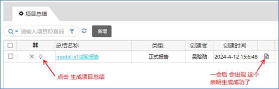 國家某試驗(yàn)中心,在試驗(yàn)項(xiàng)目完成后,進(jìn)入該項(xiàng)目,點(diǎn)擊“總結(jié)” ,進(jìn)行試驗(yàn)報(bào)告自動生成。(實(shí)現(xiàn)檢測報(bào)告電子化)