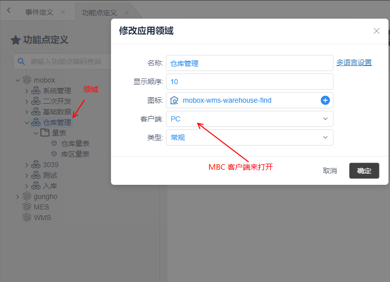 2、mobox3定義的功能領(lǐng)域可以發(fā)布到 MBC客戶端