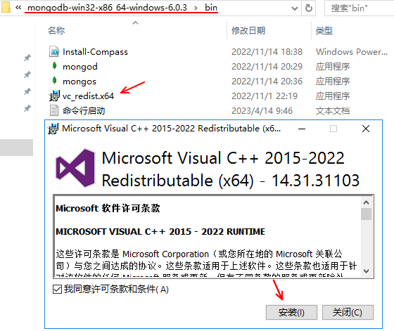 解決方法,運行vc發(fā)行環(huán)境就可以(在mongod目錄下面有 vc環(huán)境安裝盤,以管理員身份運行)